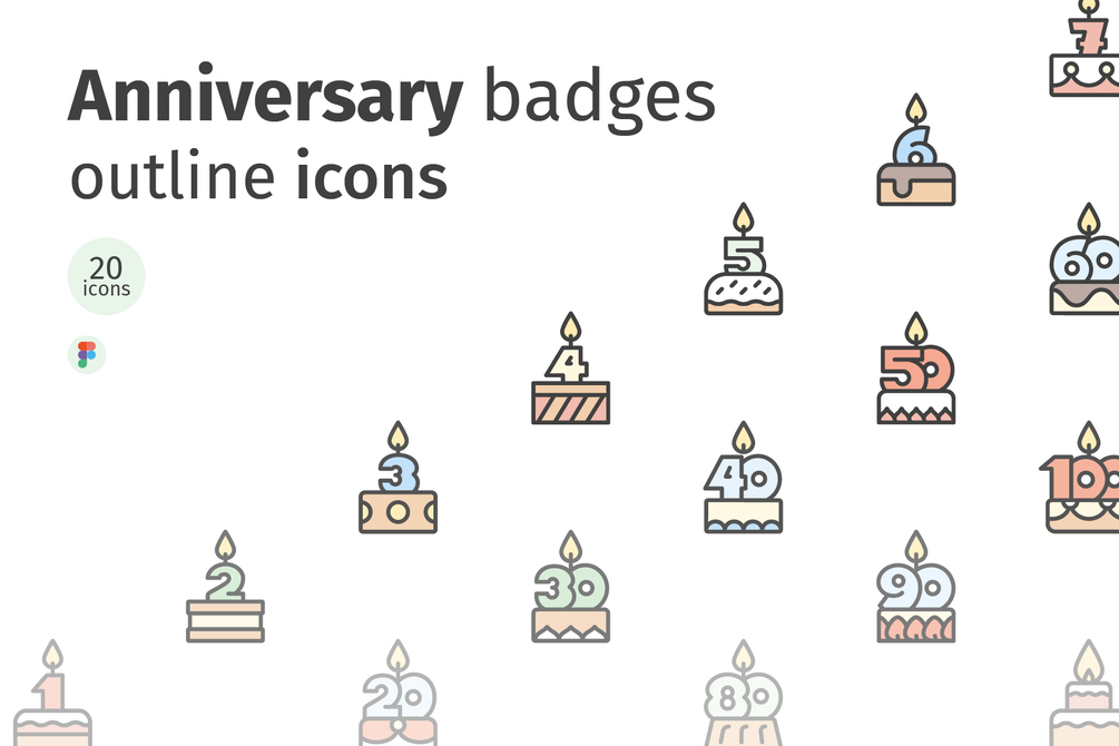 Anniversary outline colored badges